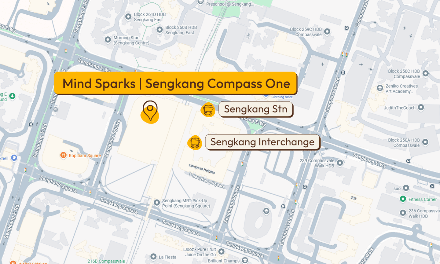 Mind Sparks Sengkang is our newest centre, spanning six spacious classrooms. Conveniently situated just a five-minute walk from Sengkang MRT, it is easily accessible for parents and students.
